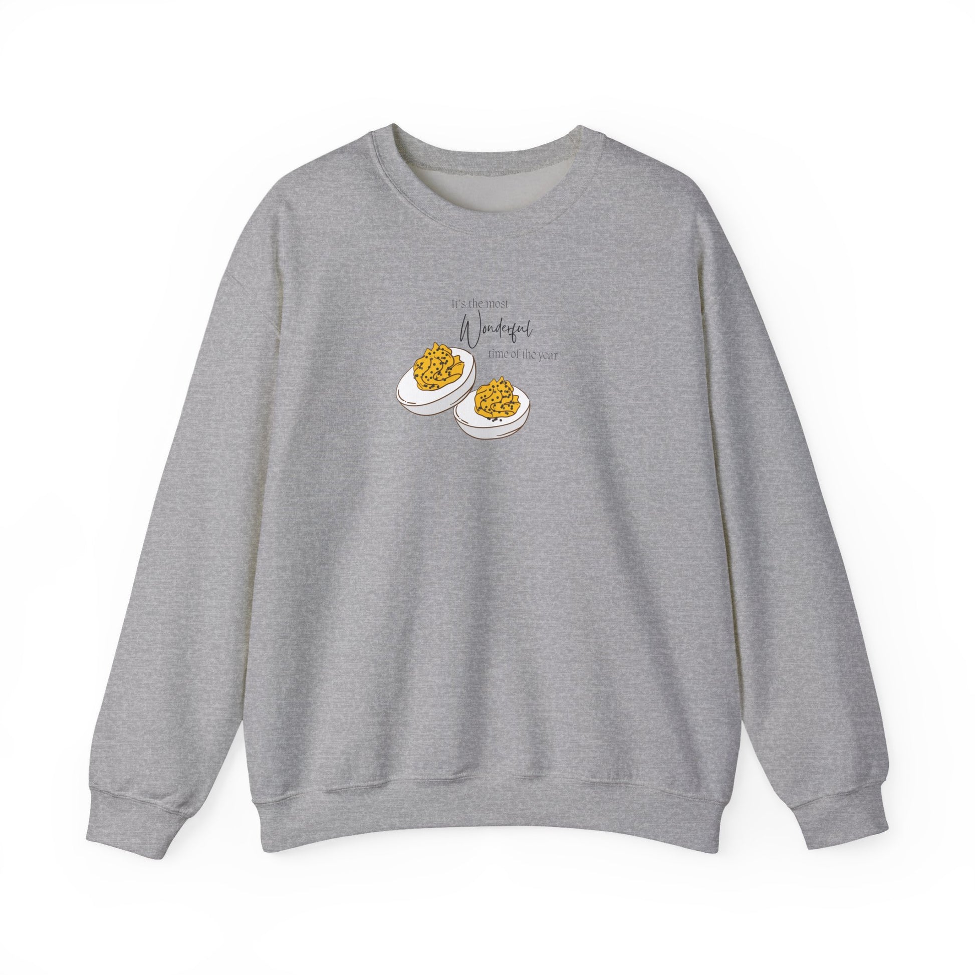 Humorous Women's Deviled Egg Crewneck Sweatshirt - Cozy Fall Funny Minimalist Design
